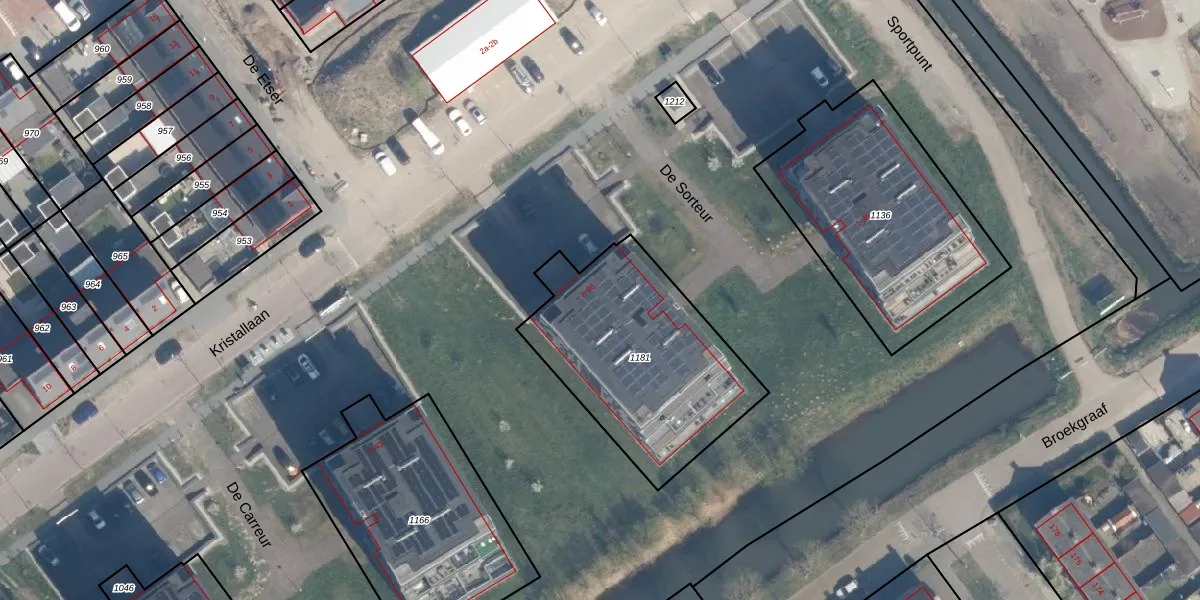 Het perceel waarop De Sorteur 30 staat heeft een oppervlakte van 910 m². Dit is een groot perceel. De perceeloppervlakte wordt geregistreerd door het Kadaster. Gedetailleerde informatie over de maten van dit perceel kunt u vinden in het rapport Kadastrale kaart met maatvoering van De Sorteur 30.