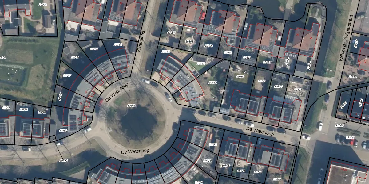 Gebruik de zoekbalk of klik op een perceel voor informatie over de adressen binnen dit perceel.