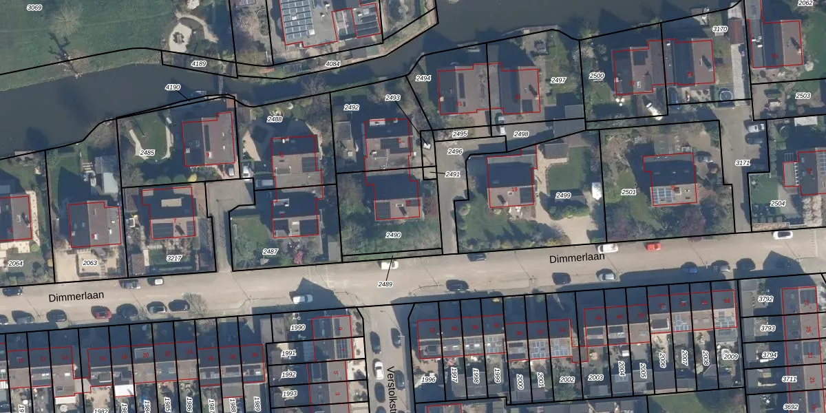 Dimmerlaan 15 is gelegen op kadastraal perceel LDM00C2490. Deze kadastrale aanduiding is uniek en wordt gebruikt door het Kadaster om eigendomsrechten en andere zakelijke rechten vast te leggen. Het perceel maakt onderdeel uit van de kadastrale gemeente Leerdam.