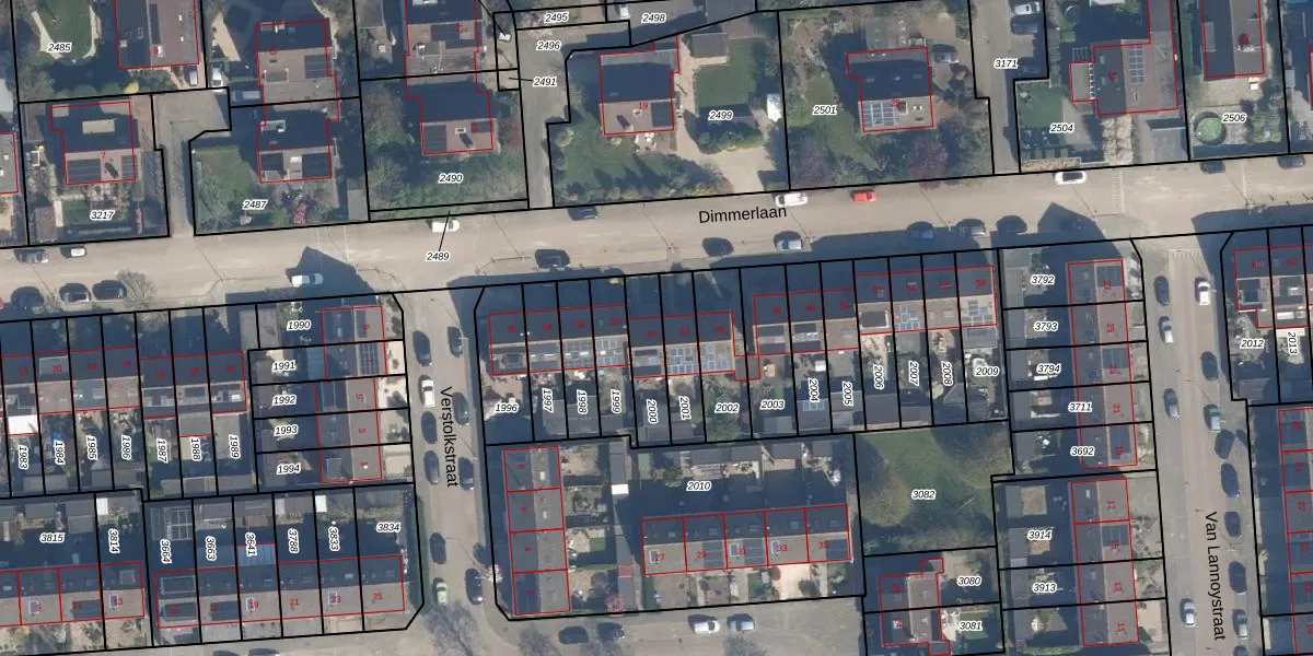 Gebruik de zoekbalk of klik op een perceel voor informatie over de adressen binnen dit perceel.