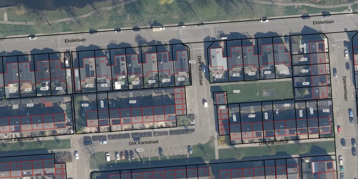 Het perceel waarop Dirk Karsstraat 29-a staat heeft een oppervlakte van 940 m². Dit is een groot perceel. De perceeloppervlakte wordt geregistreerd door het Kadaster. Gedetailleerde informatie over de maten van dit perceel kunt u vinden in het rapport Kadastrale kaart met maatvoering van Dirk Karsstraat 29-a.