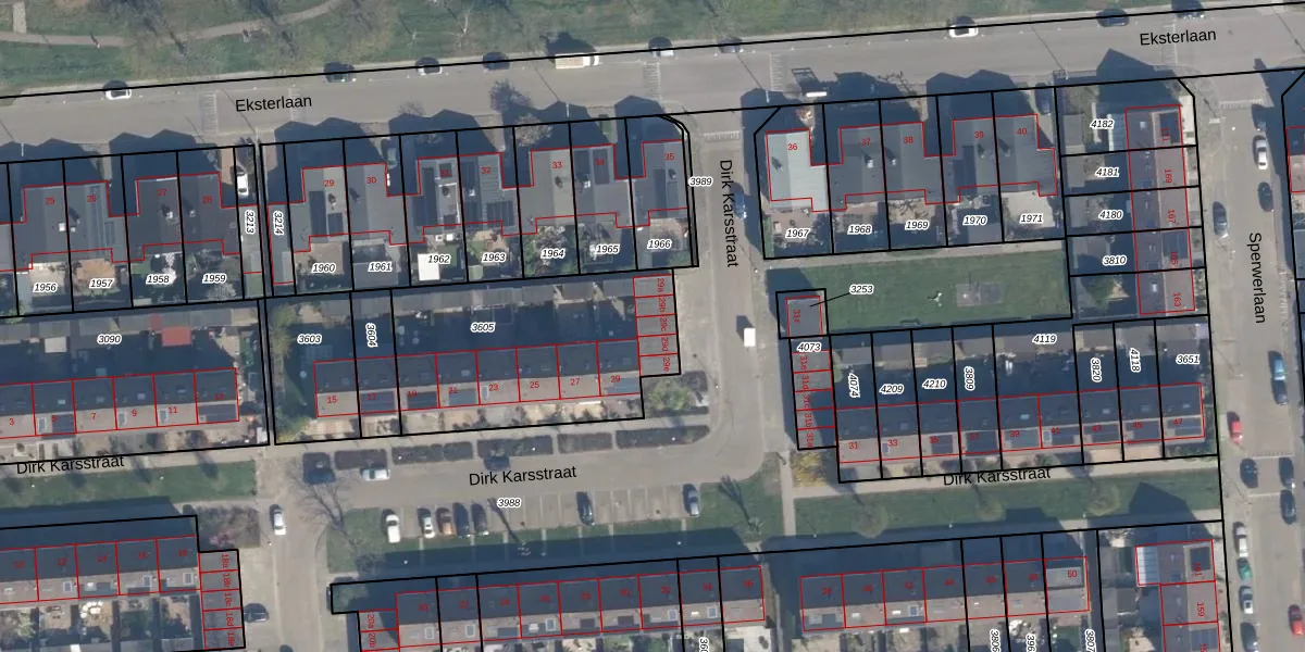 Het perceel waarop Dirk Karsstraat 29-c staat heeft een oppervlakte van 940 m². Dit is een groot perceel. De perceeloppervlakte wordt geregistreerd door het Kadaster. Gedetailleerde informatie over de maten van dit perceel kunt u vinden in het rapport Kadastrale kaart met maatvoering van Dirk Karsstraat 29-c.