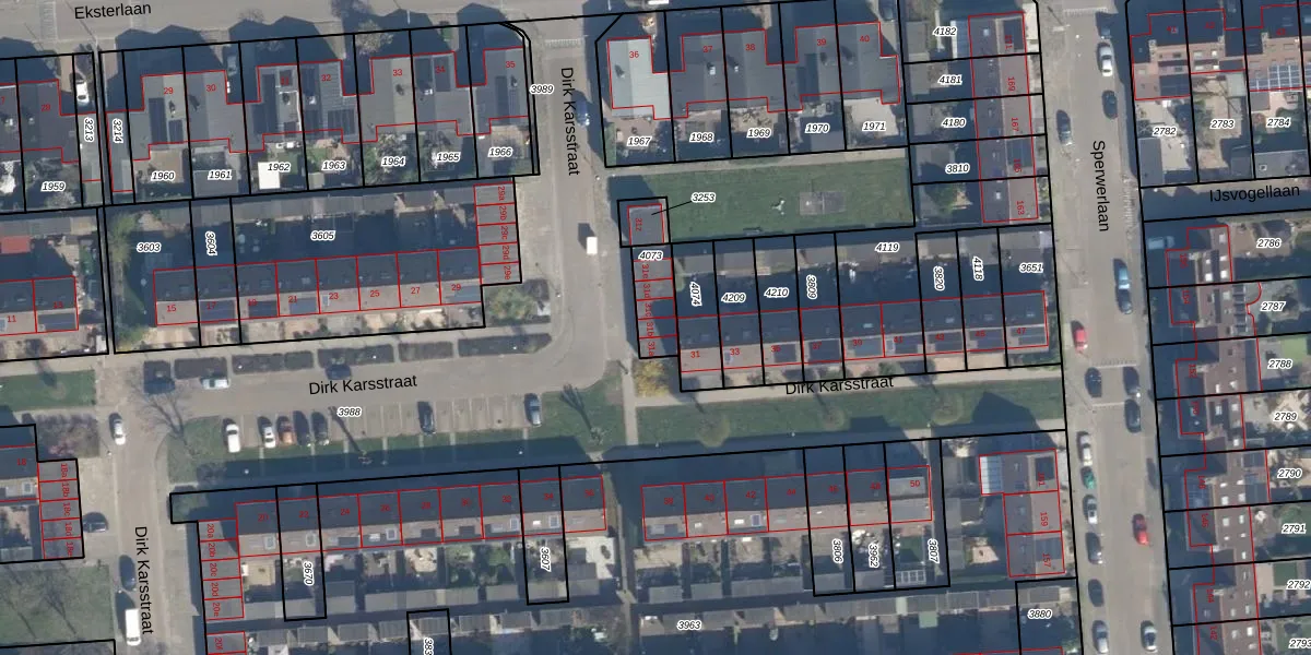 Het perceel waarop Dirk Karsstraat 31-b staat heeft een oppervlakte van 104 m². Dit is een middelgroot perceel. De perceeloppervlakte wordt geregistreerd door het Kadaster. Gedetailleerde informatie over de maten van dit perceel kunt u vinden in het rapport Kadastrale kaart met maatvoering van Dirk Karsstraat 31-b.