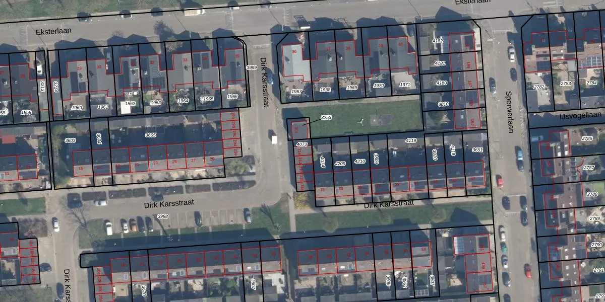 Het perceel waarop Dirk Karsstraat 31-e staat heeft een oppervlakte van 104 m². Dit is een middelgroot perceel. De perceeloppervlakte wordt geregistreerd door het Kadaster. Gedetailleerde informatie over de maten van dit perceel kunt u vinden in het rapport Kadastrale kaart met maatvoering van Dirk Karsstraat 31-e.