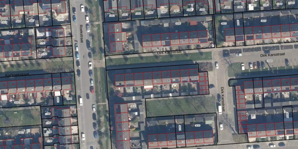 Het perceel waarop Dirk Karsstraat 8 staat heeft een oppervlakte van 2623 m². Dit is een zeer groot perceel. De perceeloppervlakte wordt geregistreerd door het Kadaster. Gedetailleerde informatie over de maten van dit perceel kunt u vinden in het rapport Kadastrale kaart met maatvoering van Dirk Karsstraat 8.