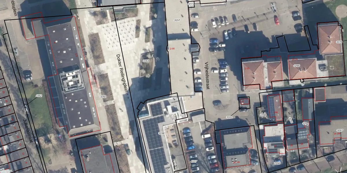 Het perceel waarop Dokter Reilinghplein 4 staat heeft een oppervlakte van 1600 m². Dit is een zeer groot perceel. De perceeloppervlakte wordt geregistreerd door het Kadaster. Gedetailleerde informatie over de maten van dit perceel kunt u vinden in het rapport Kadastrale kaart met maatvoering van Dokter Reilinghplein 4.
