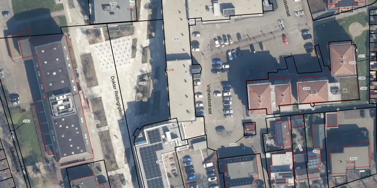 Het perceel waarop Dokter Reilinghplein 52 staat heeft een oppervlakte van 1600 m². Dit is een zeer groot perceel. De perceeloppervlakte wordt geregistreerd door het Kadaster. Gedetailleerde informatie over de maten van dit perceel kunt u vinden in het rapport Kadastrale kaart met maatvoering van Dokter Reilinghplein 52.