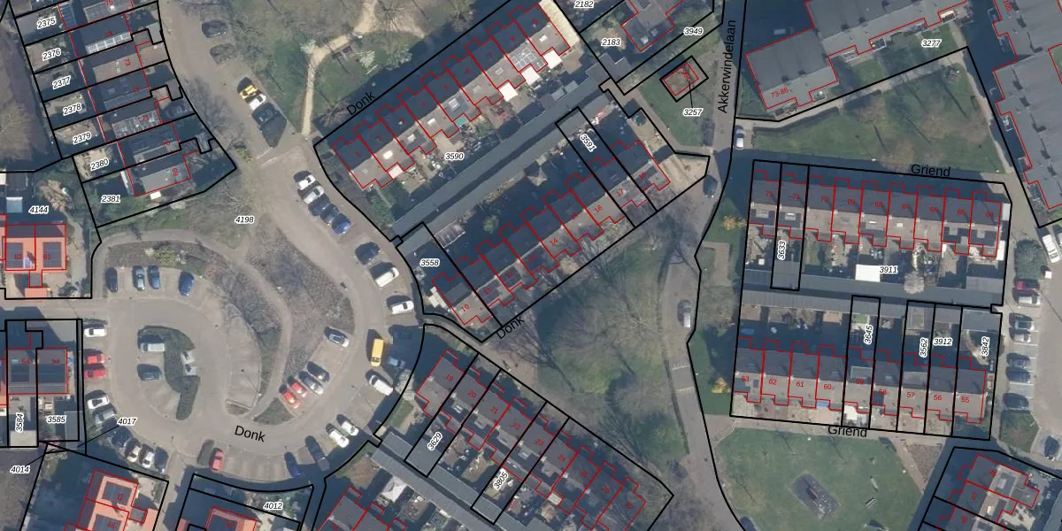 Het perceel waarop Donk 13 staat heeft een oppervlakte van 2259 m². Dit is een zeer groot perceel. De perceeloppervlakte wordt geregistreerd door het Kadaster. Gedetailleerde informatie over de maten van dit perceel kunt u vinden in het rapport Kadastrale kaart met maatvoering van Donk 13.