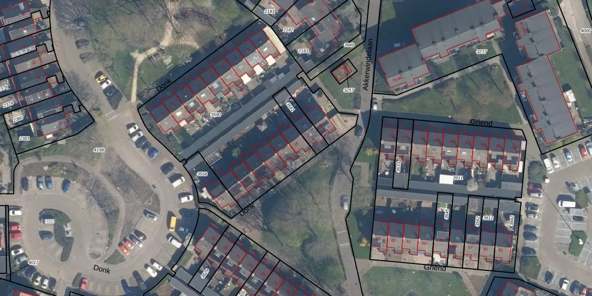 Het perceel waarop Donk 16 staat heeft een oppervlakte van 2259 m². Dit is een zeer groot perceel. De perceeloppervlakte wordt geregistreerd door het Kadaster. Gedetailleerde informatie over de maten van dit perceel kunt u vinden in het rapport Kadastrale kaart met maatvoering van Donk 16.