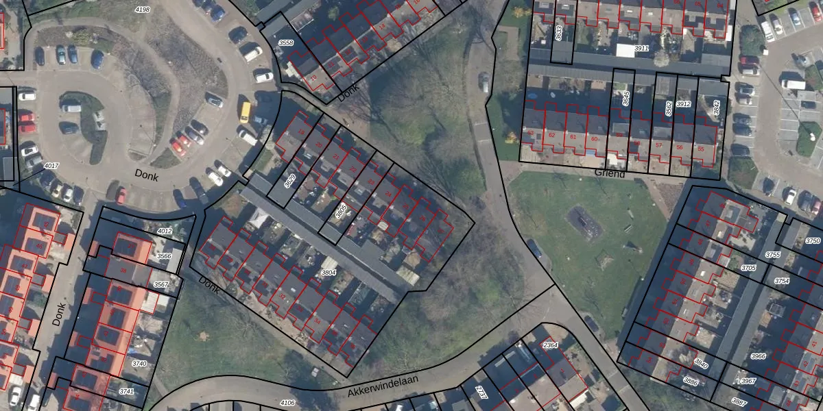 Het perceel waarop Donk 25 staat heeft een oppervlakte van 2278 m². Dit is een zeer groot perceel. De perceeloppervlakte wordt geregistreerd door het Kadaster. Gedetailleerde informatie over de maten van dit perceel kunt u vinden in het rapport Kadastrale kaart met maatvoering van Donk 25.