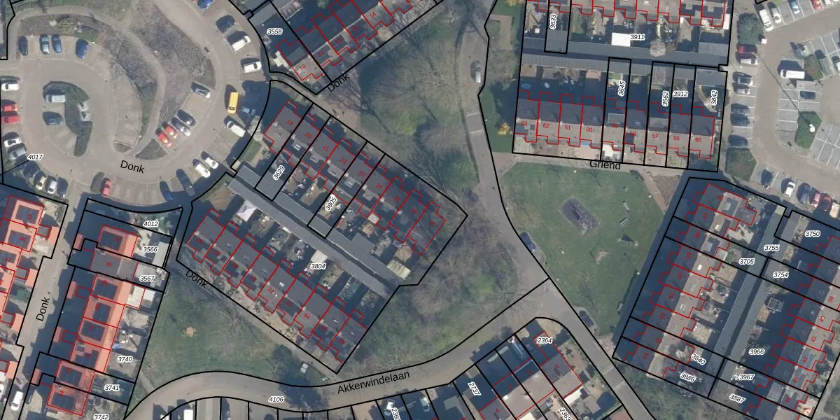Het perceel waarop Donk 26 staat heeft een oppervlakte van 2278 m². Dit is een zeer groot perceel. De perceeloppervlakte wordt geregistreerd door het Kadaster. Gedetailleerde informatie over de maten van dit perceel kunt u vinden in het rapport Kadastrale kaart met maatvoering van Donk 26.