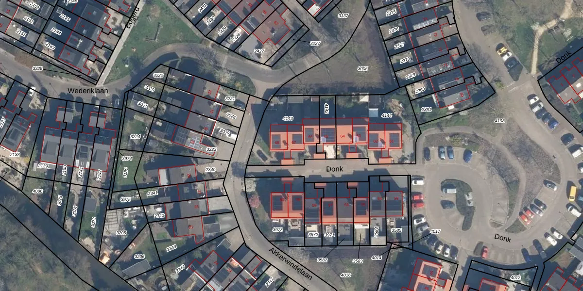 Het perceel waarop Donk 67 staat heeft een oppervlakte van 492 m². Dit is een groot perceel. De perceeloppervlakte wordt geregistreerd door het Kadaster. Gedetailleerde informatie over de maten van dit perceel kunt u vinden in het rapport Kadastrale kaart met maatvoering van Donk 67.