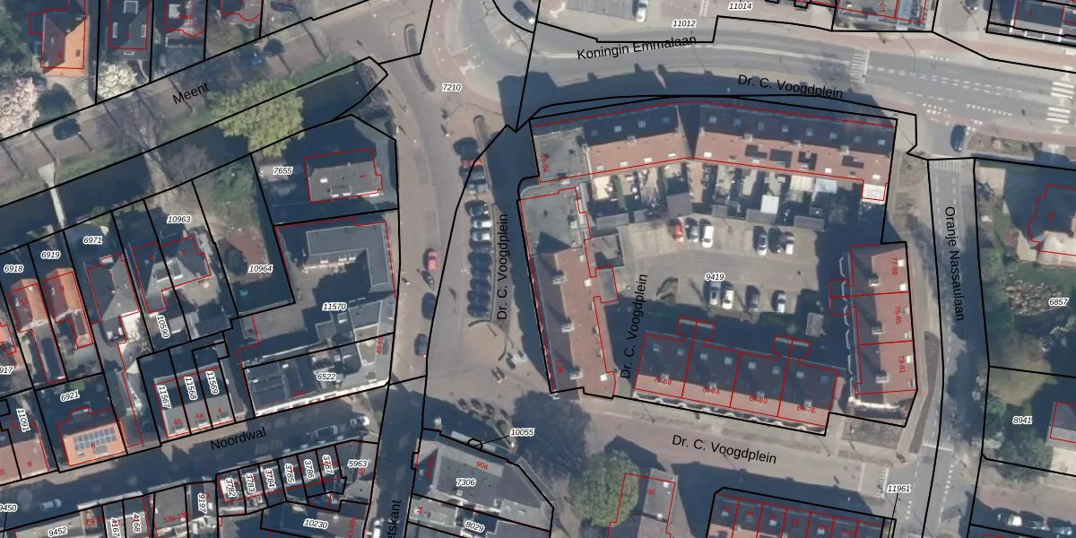 Het perceel waarop Dr. C. Voogdplein 6 staat heeft een oppervlakte van 3860 m². Dit is een zeer groot perceel. De perceeloppervlakte wordt geregistreerd door het Kadaster. Gedetailleerde informatie over de maten van dit perceel kunt u vinden in het rapport Kadastrale kaart met maatvoering van Dr. C. Voogdplein 6.