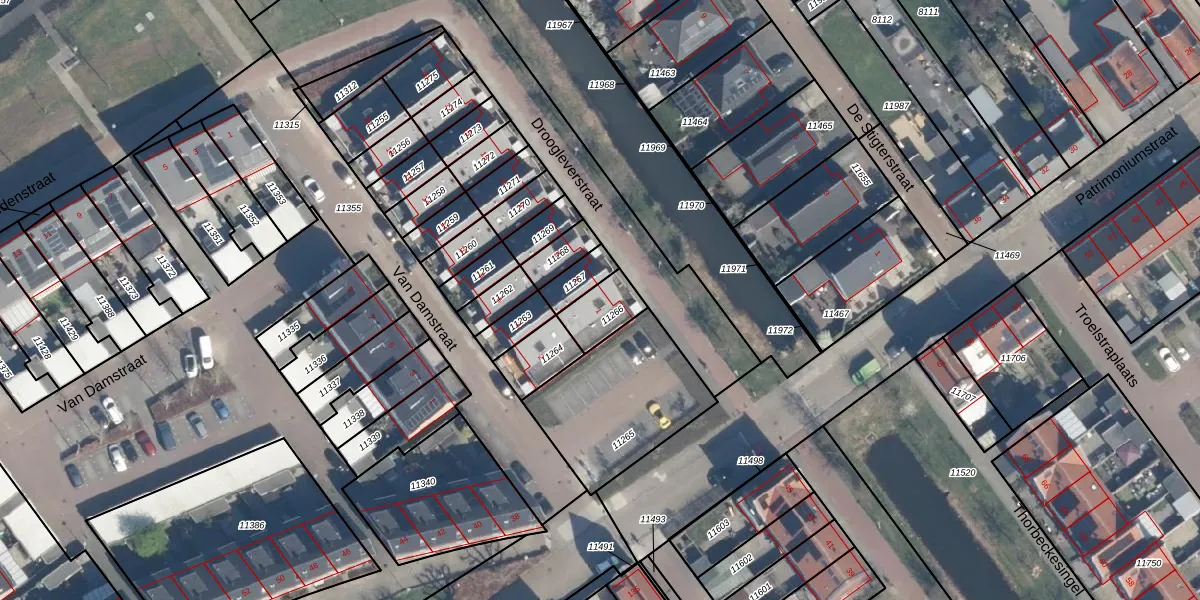 Gebruik de zoekbalk of klik op een perceel voor informatie over de adressen binnen dit perceel.