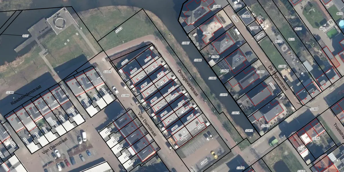 Gebruik de zoekbalk of klik op een perceel voor informatie over de adressen binnen dit perceel.