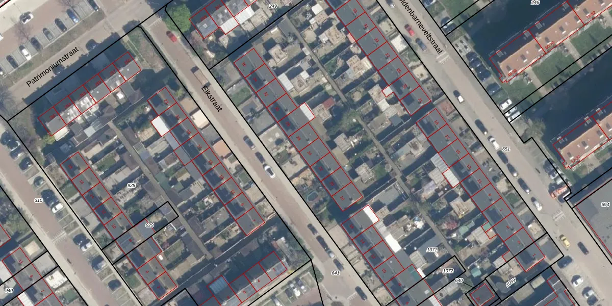Het perceel waarop Eikstraat 24 staat heeft een oppervlakte van 6233 m². Dit is een zeer groot perceel. De perceeloppervlakte wordt geregistreerd door het Kadaster. Gedetailleerde informatie over de maten van dit perceel kunt u vinden in het rapport Kadastrale kaart met maatvoering van Eikstraat 24.