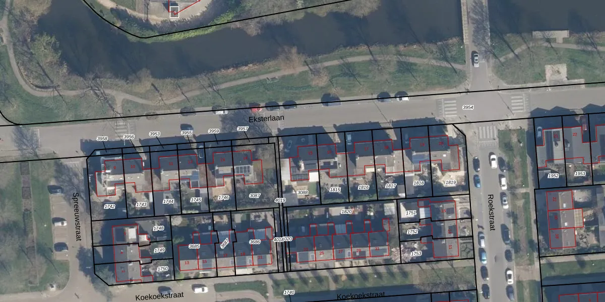 Het perceel waarop Eksterlaan 15 staat heeft een oppervlakte van 300 m². Dit is een groot perceel. De perceeloppervlakte wordt geregistreerd door het Kadaster. Gedetailleerde informatie over de maten van dit perceel kunt u vinden in het rapport Kadastrale kaart met maatvoering van Eksterlaan 15.