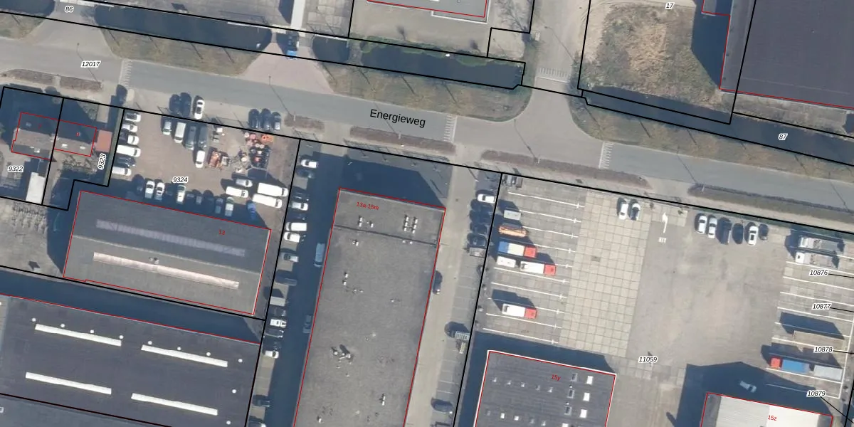 Het perceel waarop Energieweg 15-a staat heeft een oppervlakte van 5166 m². Dit is een zeer groot perceel. De perceeloppervlakte wordt geregistreerd door het Kadaster. Gedetailleerde informatie over de maten van dit perceel kunt u vinden in het rapport Kadastrale kaart met maatvoering van Energieweg 15-a.