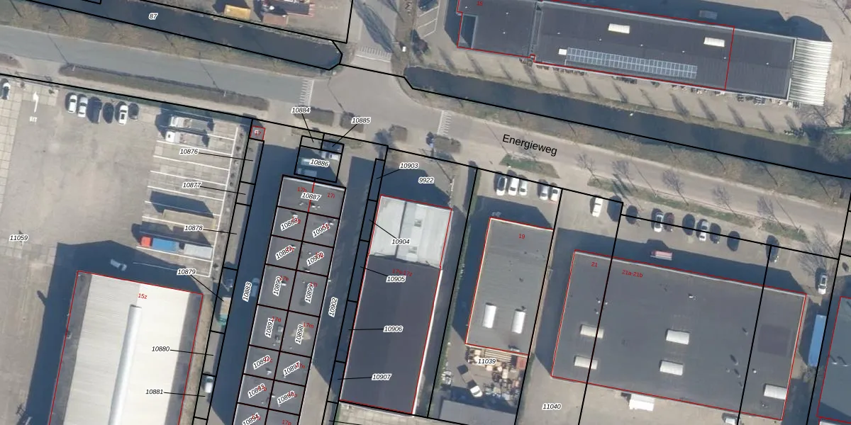 Het perceel waarop Energieweg 17-y staat heeft een oppervlakte van 1290 m². Dit is een zeer groot perceel. De perceeloppervlakte wordt geregistreerd door het Kadaster. Gedetailleerde informatie over de maten van dit perceel kunt u vinden in het rapport Kadastrale kaart met maatvoering van Energieweg 17-y.