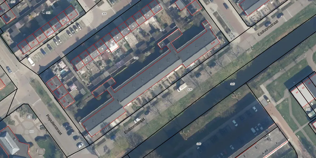 Esdoornstraat 14 is gelegen op kadastraal perceel LDM00D308. Deze kadastrale aanduiding is uniek en wordt gebruikt door het Kadaster om eigendomsrechten en andere zakelijke rechten vast te leggen. Het perceel maakt onderdeel uit van de kadastrale gemeente Leerdam.