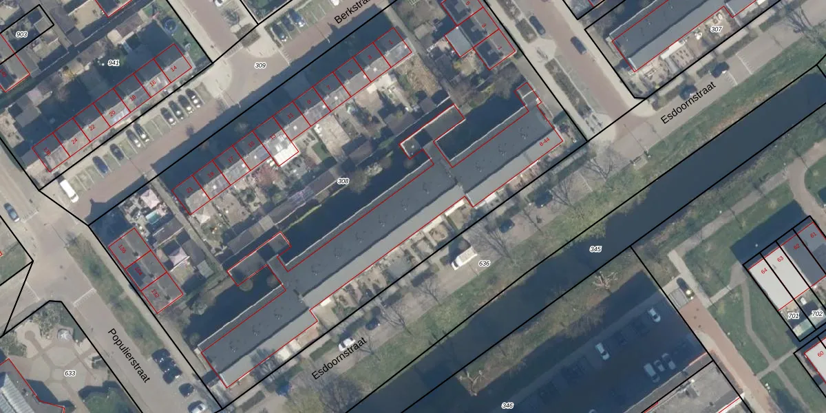 Het perceel waarop Esdoornstraat 35 staat heeft een oppervlakte van 6010 m². Dit is een zeer groot perceel. De perceeloppervlakte wordt geregistreerd door het Kadaster. Gedetailleerde informatie over de maten van dit perceel kunt u vinden in het rapport Kadastrale kaart met maatvoering van Esdoornstraat 35.