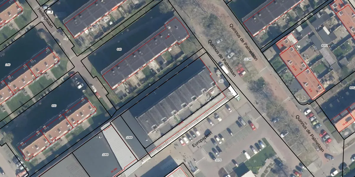 Het perceel waarop Europaplein 49 staat heeft een oppervlakte van 1416 m². Dit is een zeer groot perceel. De perceeloppervlakte wordt geregistreerd door het Kadaster. Gedetailleerde informatie over de maten van dit perceel kunt u vinden in het rapport Kadastrale kaart met maatvoering van Europaplein 49.