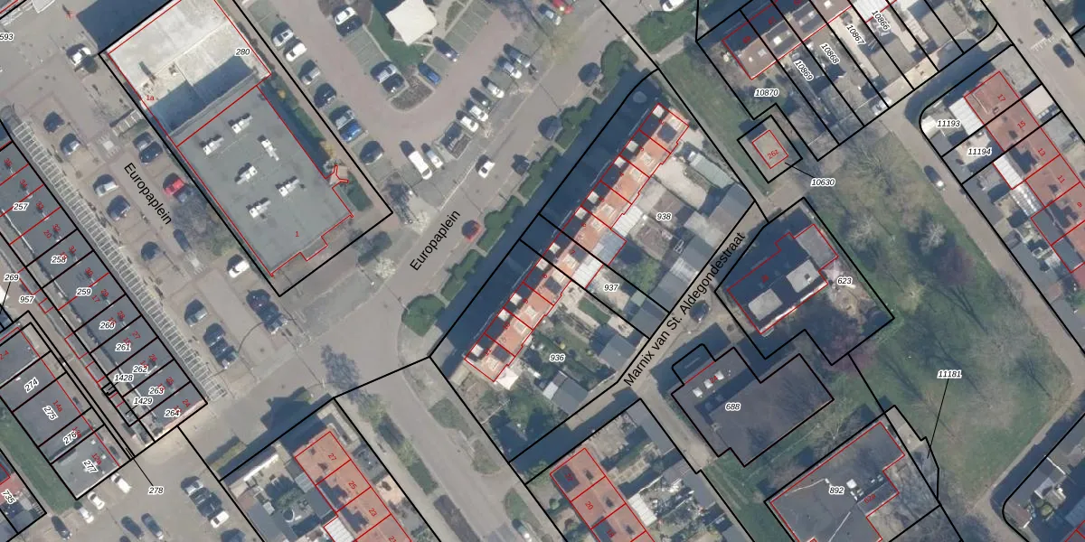 Het perceel waarop Europaplein 8 staat heeft een oppervlakte van 866 m². Dit is een groot perceel. De perceeloppervlakte wordt geregistreerd door het Kadaster. Gedetailleerde informatie over de maten van dit perceel kunt u vinden in het rapport Kadastrale kaart met maatvoering van Europaplein 8.