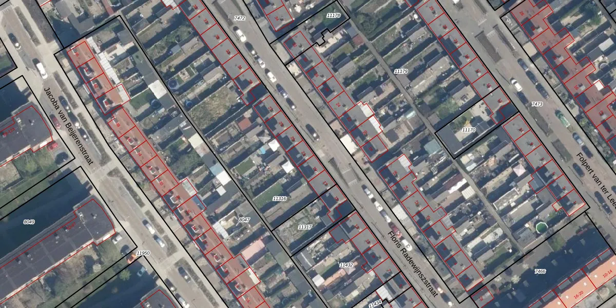Floris Radewijnszstraat 21 is gelegen op kadastraal perceel LDM00B11316. Deze kadastrale aanduiding is uniek en wordt gebruikt door het Kadaster om eigendomsrechten en andere zakelijke rechten vast te leggen. Het perceel maakt onderdeel uit van de kadastrale gemeente Leerdam.