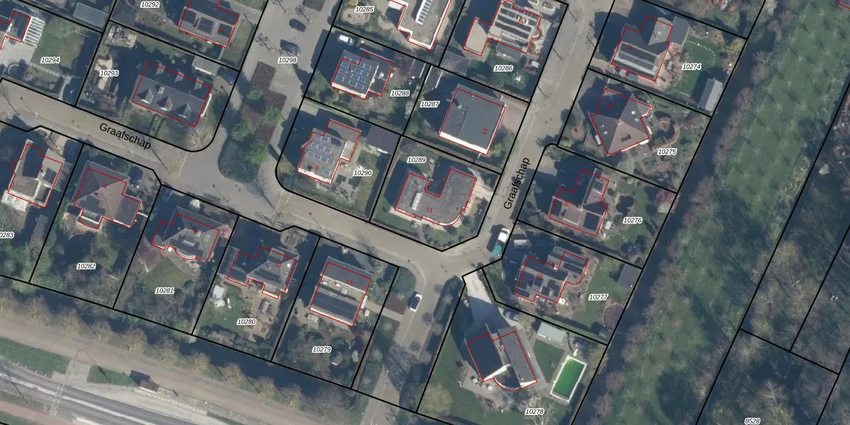 Het perceel waarop Graafschap 11 staat heeft een oppervlakte van 530 m². Dit is een groot perceel. De perceeloppervlakte wordt geregistreerd door het Kadaster. Gedetailleerde informatie over de maten van dit perceel kunt u vinden in het rapport Kadastrale kaart met maatvoering van Graafschap 11.