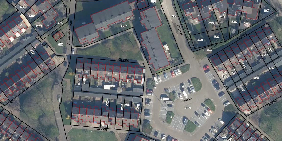 Het perceel waarop Griend 64 staat heeft een oppervlakte van 1682 m². Dit is een zeer groot perceel. De perceeloppervlakte wordt geregistreerd door het Kadaster. Gedetailleerde informatie over de maten van dit perceel kunt u vinden in het rapport Kadastrale kaart met maatvoering van Griend 64.