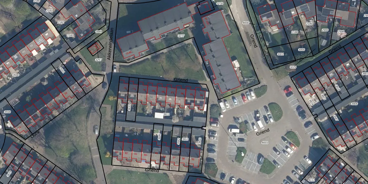 Het perceel waarop Griend 66 staat heeft een oppervlakte van 1682 m². Dit is een zeer groot perceel. De perceeloppervlakte wordt geregistreerd door het Kadaster. Gedetailleerde informatie over de maten van dit perceel kunt u vinden in het rapport Kadastrale kaart met maatvoering van Griend 66.