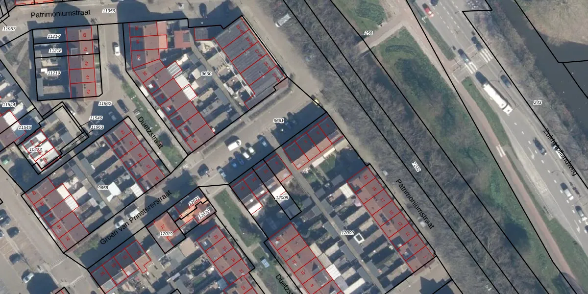 Het perceel waarop Groen van Prinstererstraat 7 staat heeft een oppervlakte van 2579 m². Dit is een zeer groot perceel. De perceeloppervlakte wordt geregistreerd door het Kadaster. Gedetailleerde informatie over de maten van dit perceel kunt u vinden in het rapport Kadastrale kaart met maatvoering van Groen van Prinstererstraat 7.
