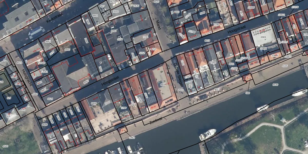 Het adres is gelegen op perceel 8934 in de sectie B en de kadastrale gemeente Leerdam. De kadastrale aanduiding is aldus LDM00-B-8934. Het perceel is kleiner dan gemiddeld in Leerdam. Het perceel is 329 m² groot, terwijl het gemiddelde ligt op 3559,5 m². De grootste perceeloppervlakte in de kadastrale gemeente is 33,8 ha. De kleinste oppervlakte bedraagt 0 m². Op het perceel liggen in totaal 16 adressen. De laatste wijziging in het de Basisregistratie Kadaster (BRK) was op 01-06-2001.