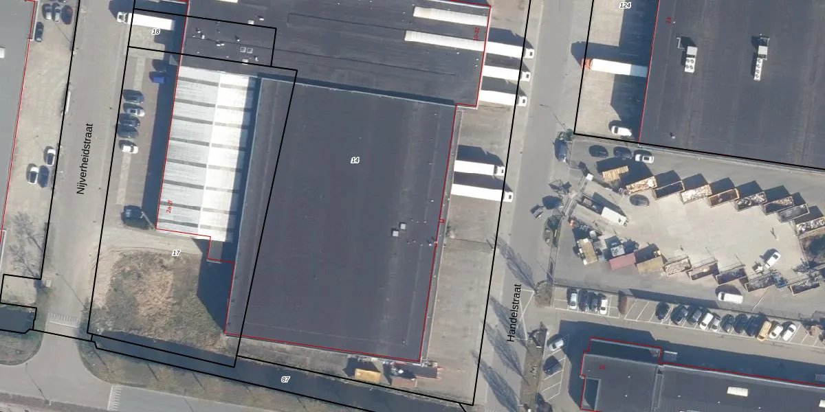Het perceel waarop Handelstraat 20 staat heeft een oppervlakte van 6435 m². Dit is een zeer groot perceel. De perceeloppervlakte wordt geregistreerd door het Kadaster. Gedetailleerde informatie over de maten van dit perceel kunt u vinden in het rapport Kadastrale kaart met maatvoering van Handelstraat 20.