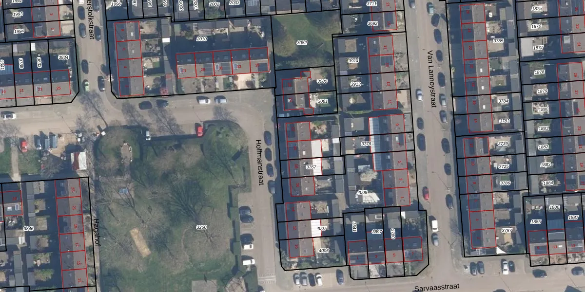 Het perceel waarop Hoffmanstraat 20 staat heeft een oppervlakte van 1673 m². Dit is een zeer groot perceel. De perceeloppervlakte wordt geregistreerd door het Kadaster. Gedetailleerde informatie over de maten van dit perceel kunt u vinden in het rapport Kadastrale kaart met maatvoering van Hoffmanstraat 20.