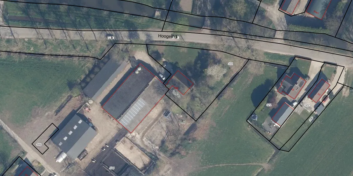 Het perceel waarop Hoogeind 15-a staat heeft een oppervlakte van 1325 m². Dit is een zeer groot perceel. De perceeloppervlakte wordt geregistreerd door het Kadaster. Gedetailleerde informatie over de maten van dit perceel kunt u vinden in het rapport Kadastrale kaart met maatvoering van Hoogeind 15-a.