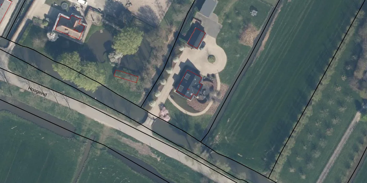 Het perceel waarop Hoogeind 2-d staat heeft een oppervlakte van 1,4 ha. Dit is een zeer groot perceel. De perceeloppervlakte wordt geregistreerd door het Kadaster. Gedetailleerde informatie over de maten van dit perceel kunt u vinden in het rapport Kadastrale kaart met maatvoering van Hoogeind 2-d.