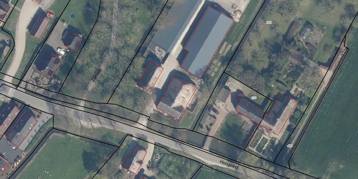 Het perceel waarop Hoogeind 52 staat heeft een oppervlakte van 2,2 ha. Dit is een zeer groot perceel. De perceeloppervlakte wordt geregistreerd door het Kadaster. Gedetailleerde informatie over de maten van dit perceel kunt u vinden in het rapport Kadastrale kaart met maatvoering van Hoogeind 52.