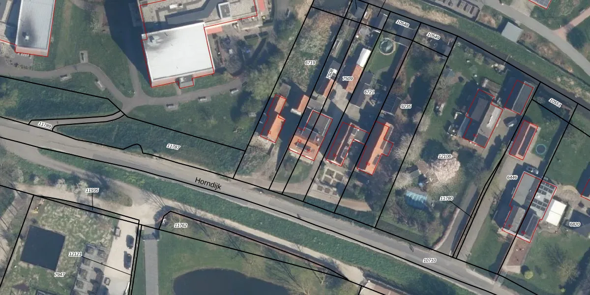 Het perceel waarop Horndijk 53 staat heeft een oppervlakte van 325 m². Dit is een groot perceel. De perceeloppervlakte wordt geregistreerd door het Kadaster. Gedetailleerde informatie over de maten van dit perceel kunt u vinden in het rapport Kadastrale kaart met maatvoering van Horndijk 53.