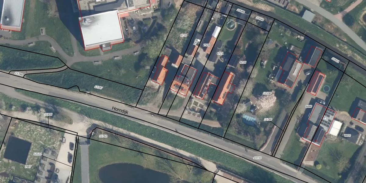 Het perceel waarop Horndijk 55 staat heeft een oppervlakte van 485 m². Dit is een groot perceel. De perceeloppervlakte wordt geregistreerd door het Kadaster. Gedetailleerde informatie over de maten van dit perceel kunt u vinden in het rapport Kadastrale kaart met maatvoering van Horndijk 55.