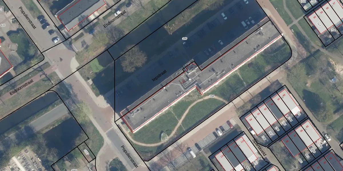 Het perceel waarop Iepstraat 5-a staat heeft een oppervlakte van 3015 m². Dit is een zeer groot perceel. De perceeloppervlakte wordt geregistreerd door het Kadaster. Gedetailleerde informatie over de maten van dit perceel kunt u vinden in het rapport Kadastrale kaart met maatvoering van Iepstraat 5-a.
