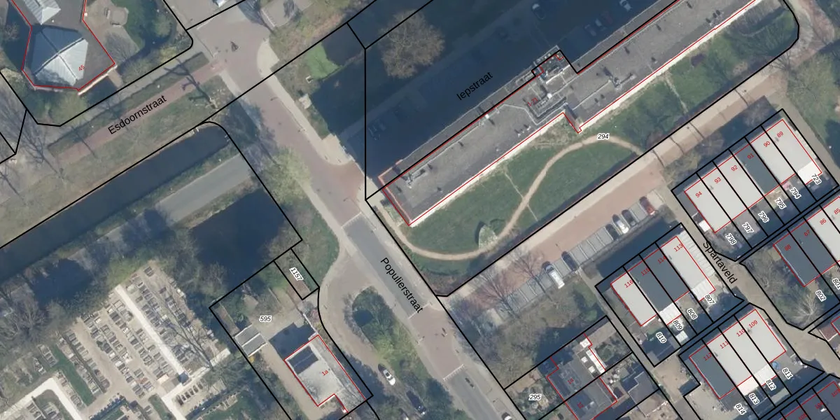Het perceel waarop Iepstraat 57 staat heeft een oppervlakte van 3015 m². Dit is een zeer groot perceel. De perceeloppervlakte wordt geregistreerd door het Kadaster. Gedetailleerde informatie over de maten van dit perceel kunt u vinden in het rapport Kadastrale kaart met maatvoering van Iepstraat 57.