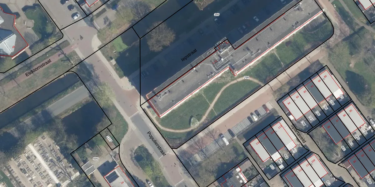 Het perceel waarop Iepstraat 59 staat heeft een oppervlakte van 3015 m². Dit is een zeer groot perceel. De perceeloppervlakte wordt geregistreerd door het Kadaster. Gedetailleerde informatie over de maten van dit perceel kunt u vinden in het rapport Kadastrale kaart met maatvoering van Iepstraat 59.