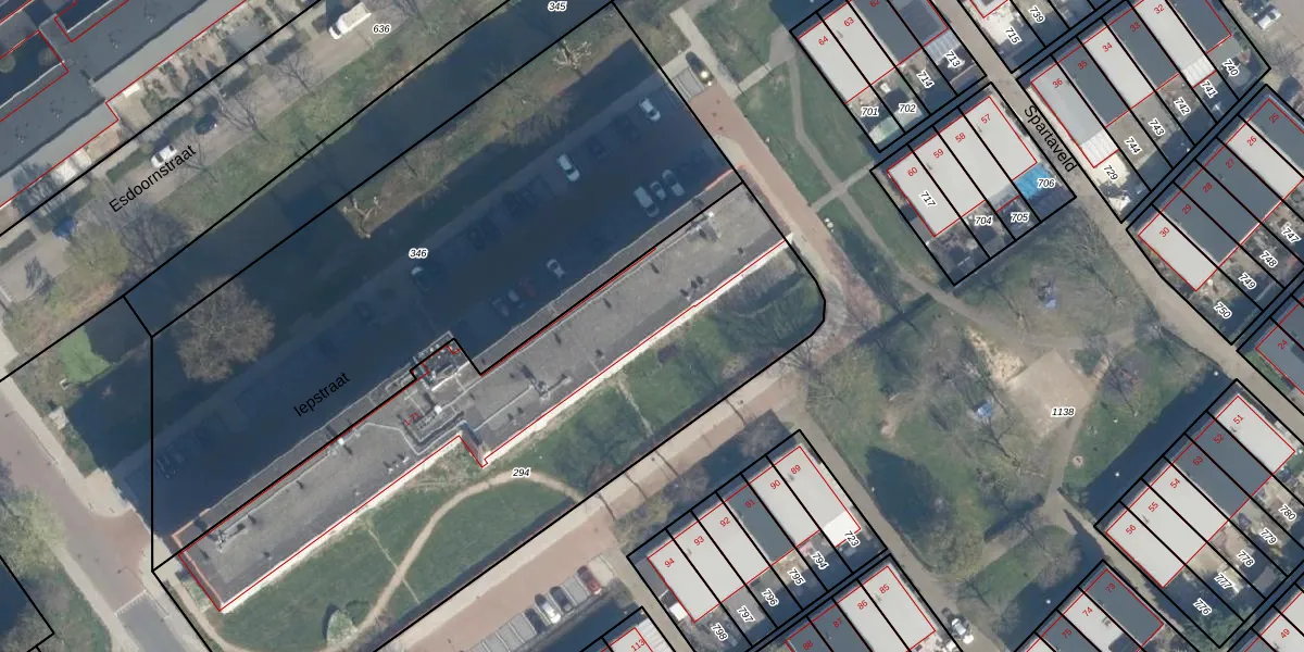 Het perceel waarop Iepstraat 64 staat heeft een oppervlakte van 3015 m². Dit is een zeer groot perceel. De perceeloppervlakte wordt geregistreerd door het Kadaster. Gedetailleerde informatie over de maten van dit perceel kunt u vinden in het rapport Kadastrale kaart met maatvoering van Iepstraat 64.