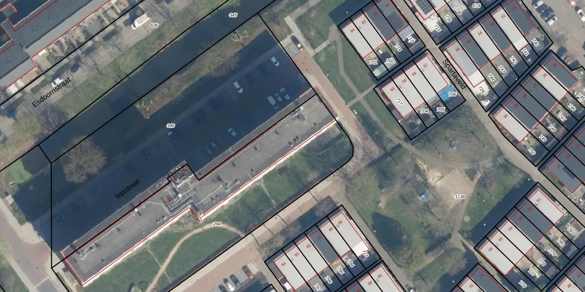 Het perceel waarop Iepstraat 65 staat heeft een oppervlakte van 3015 m². Dit is een zeer groot perceel. De perceeloppervlakte wordt geregistreerd door het Kadaster. Gedetailleerde informatie over de maten van dit perceel kunt u vinden in het rapport Kadastrale kaart met maatvoering van Iepstraat 65.