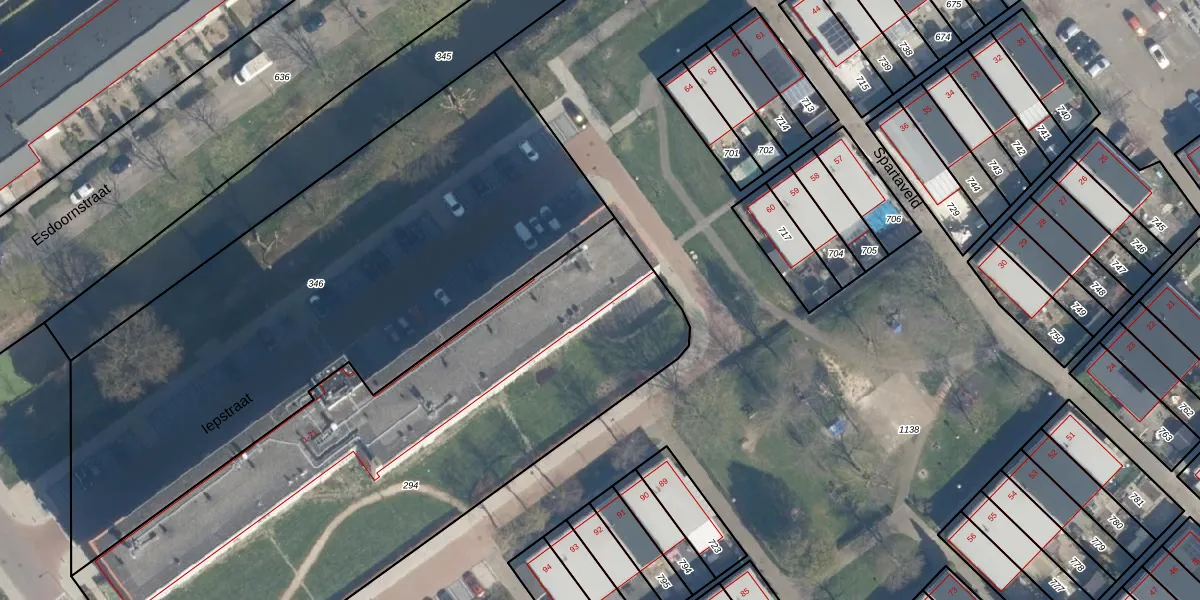 Het perceel waarop Iepstraat 66 staat heeft een oppervlakte van 3015 m². Dit is een zeer groot perceel. De perceeloppervlakte wordt geregistreerd door het Kadaster. Gedetailleerde informatie over de maten van dit perceel kunt u vinden in het rapport Kadastrale kaart met maatvoering van Iepstraat 66.