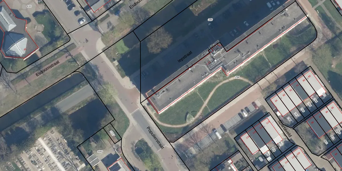 Het perceel waarop Iepstraat 69 staat heeft een oppervlakte van 3015 m². Dit is een zeer groot perceel. De perceeloppervlakte wordt geregistreerd door het Kadaster. Gedetailleerde informatie over de maten van dit perceel kunt u vinden in het rapport Kadastrale kaart met maatvoering van Iepstraat 69.