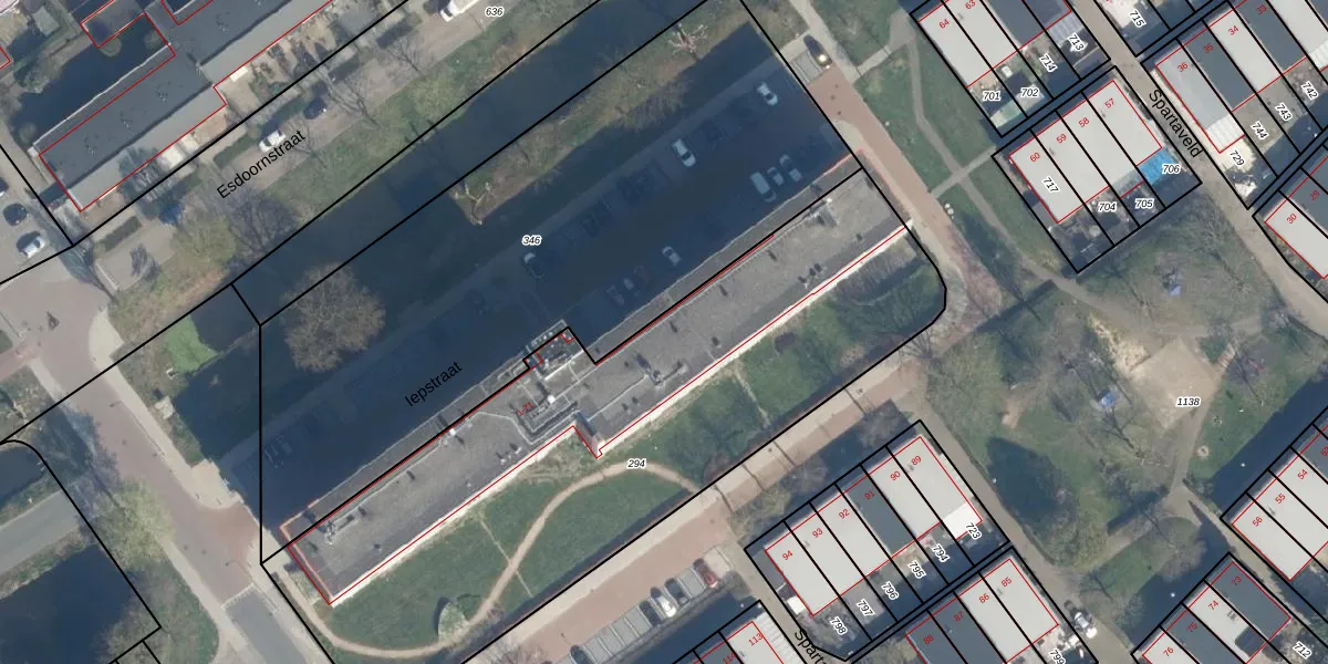 Het perceel waarop Iepstraat 7-a staat heeft een oppervlakte van 3015 m². Dit is een zeer groot perceel. De perceeloppervlakte wordt geregistreerd door het Kadaster. Gedetailleerde informatie over de maten van dit perceel kunt u vinden in het rapport Kadastrale kaart met maatvoering van Iepstraat 7-a.