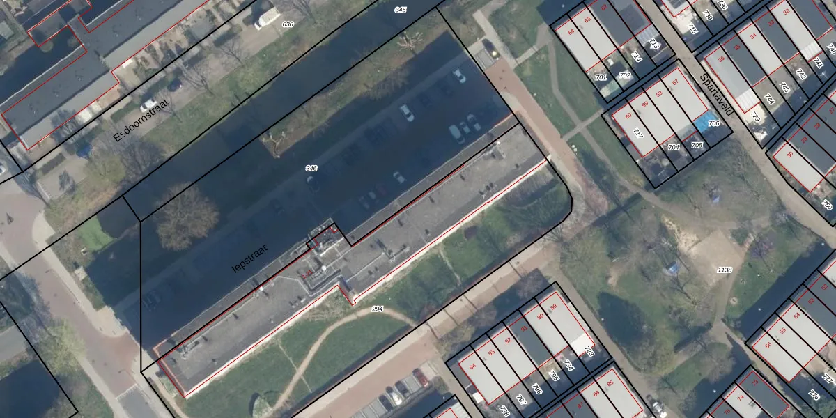Het perceel waarop Iepstraat 8 staat heeft een oppervlakte van 3015 m². Dit is een zeer groot perceel. De perceeloppervlakte wordt geregistreerd door het Kadaster. Gedetailleerde informatie over de maten van dit perceel kunt u vinden in het rapport Kadastrale kaart met maatvoering van Iepstraat 8.
