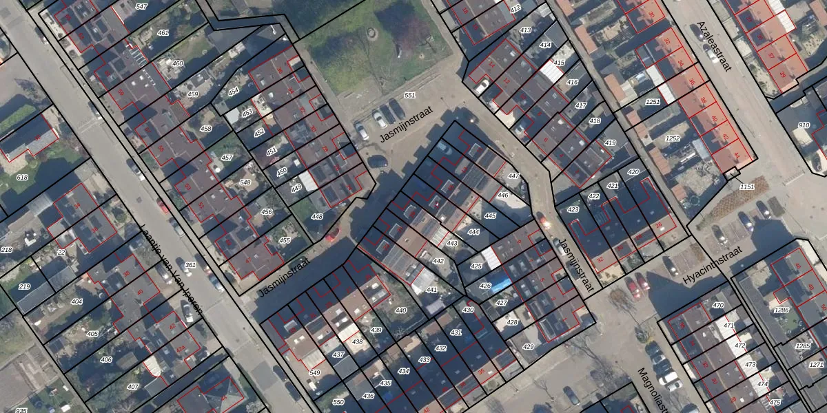 Het perceel waarop Jasmijnstraat 19 staat heeft een oppervlakte van 123 m². Dit is een middelgroot perceel. De perceeloppervlakte wordt geregistreerd door het Kadaster. Gedetailleerde informatie over de maten van dit perceel kunt u vinden in het rapport Kadastrale kaart met maatvoering van Jasmijnstraat 19.